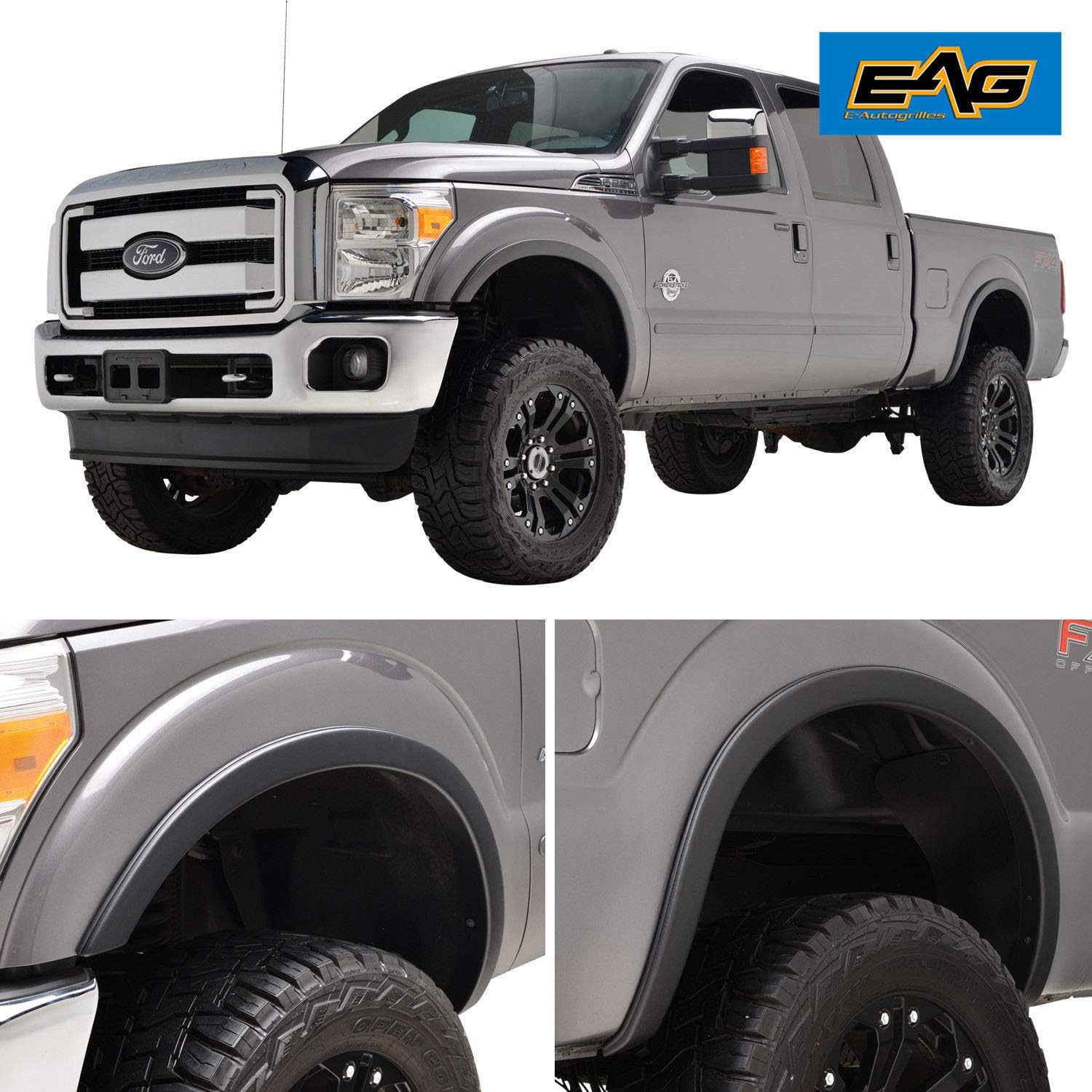 Amazon Com Eag Fender Flares 4pcs Textured Black Pocket Rivet Style Abs Fit For 08 10 Super Duty F250 F350 Automotive